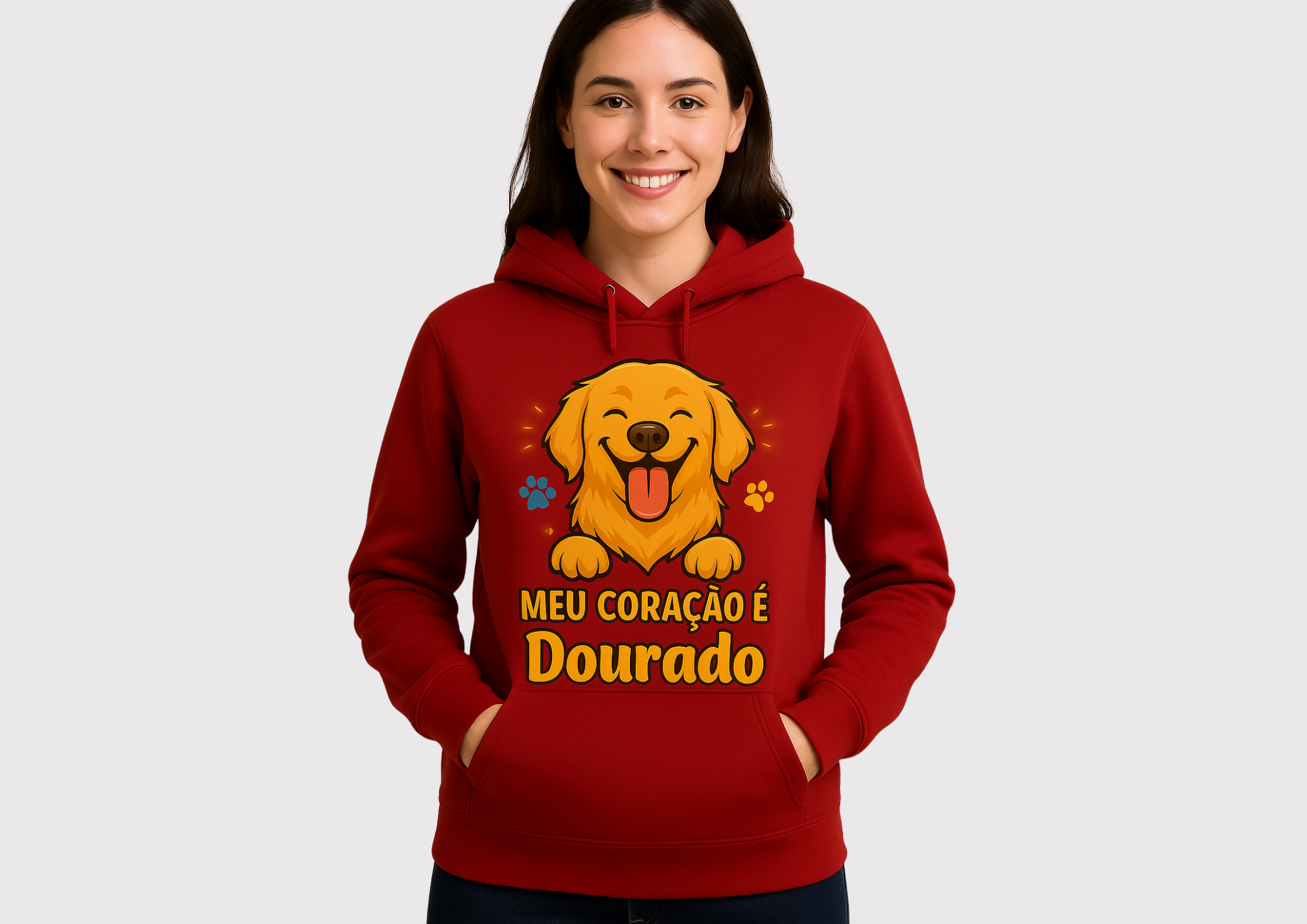 MOLETOM VERMELHO COLEÇÃO MÃE DE PET MEU CORAÇÃO É DOURADO FEMININO