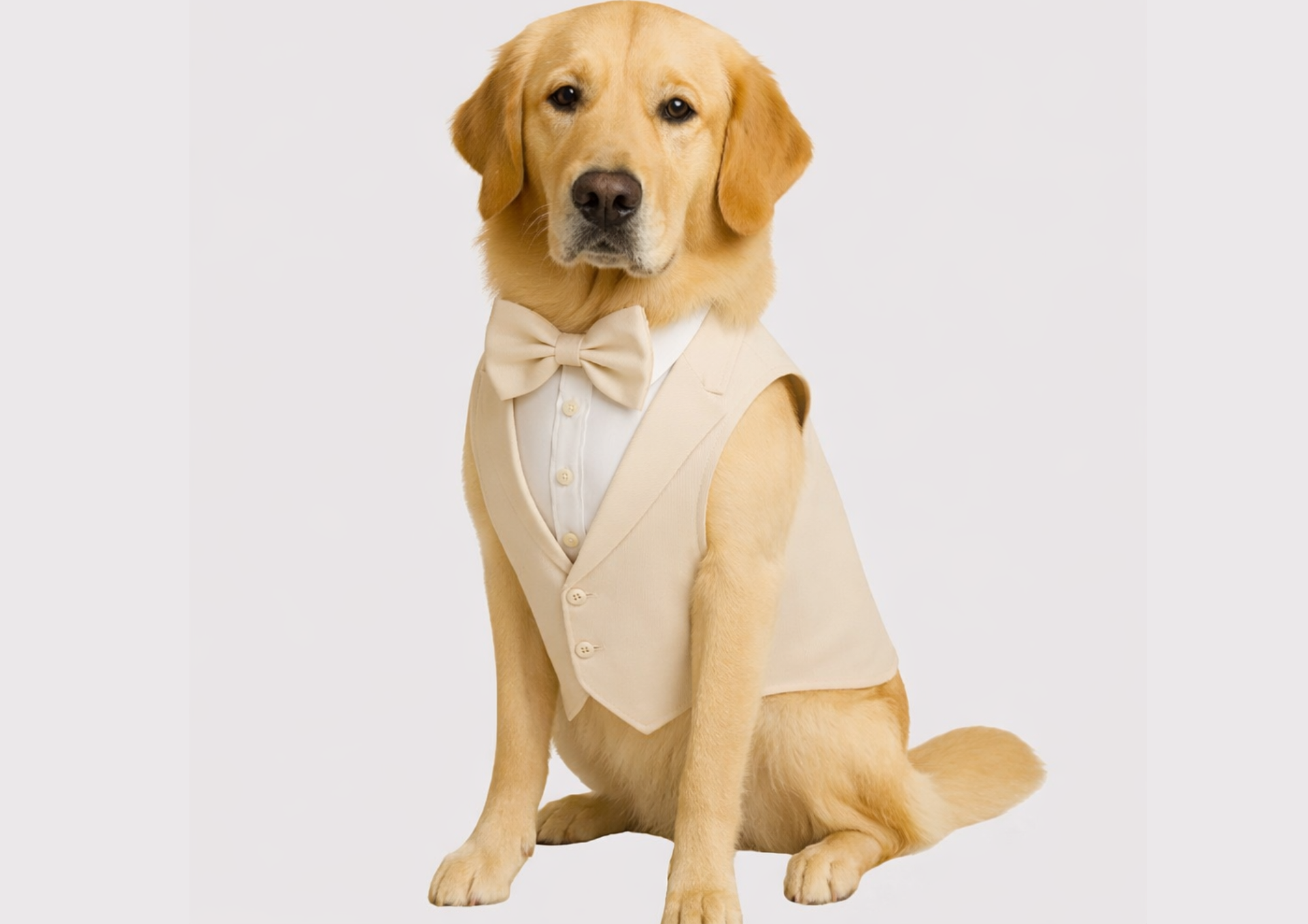 Com um design sofisticado e delicado, essa roupa pet social na cor bege claro é perfeita para cerimônias ao ar livre, casamentos diurnos e eventos especiais, trazendo leveza, estilo e muito charme ao seu pet.