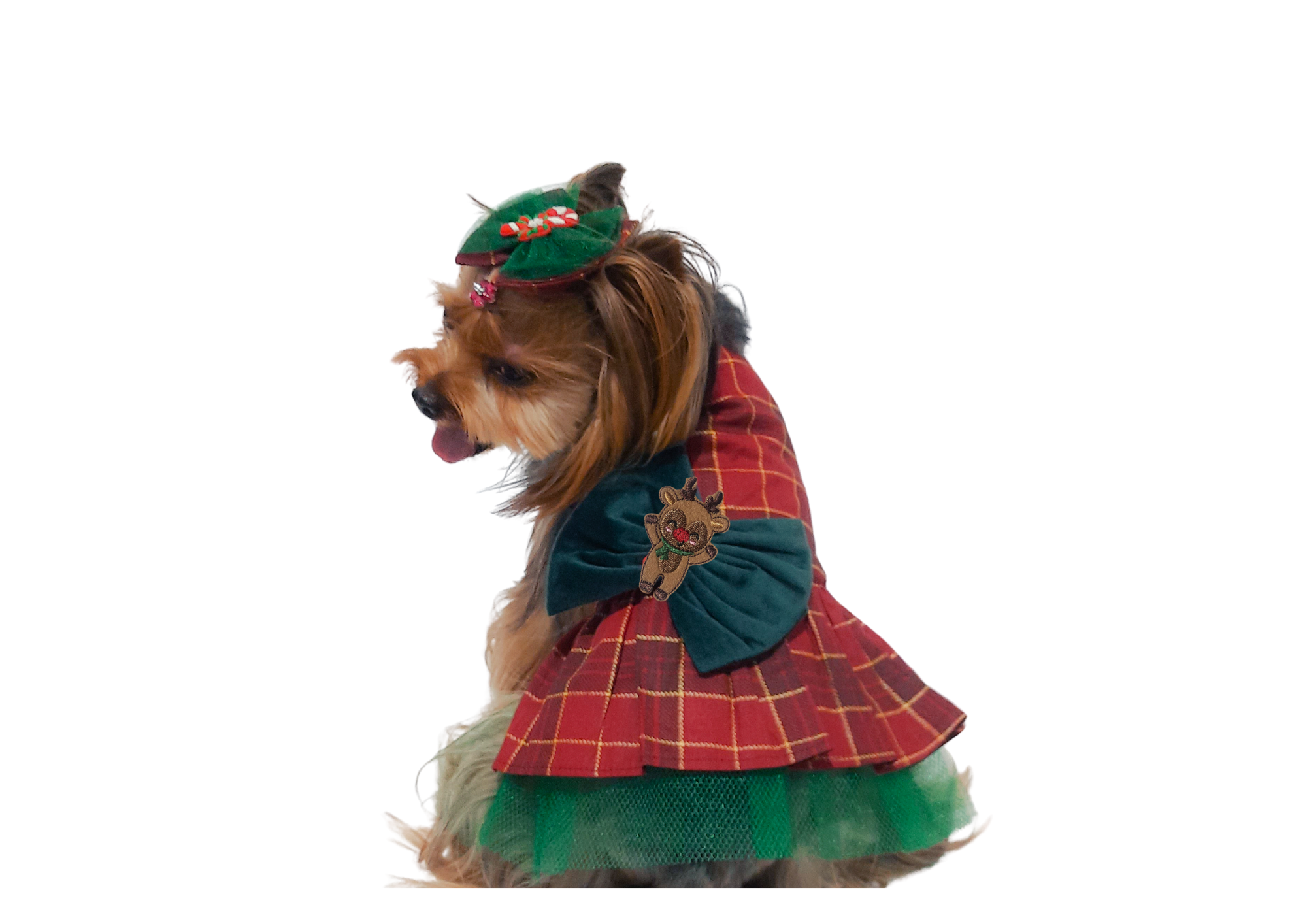 Vestido Pet Natalino Xadrez Laço Reninha Luxo Gaby Moda Pet